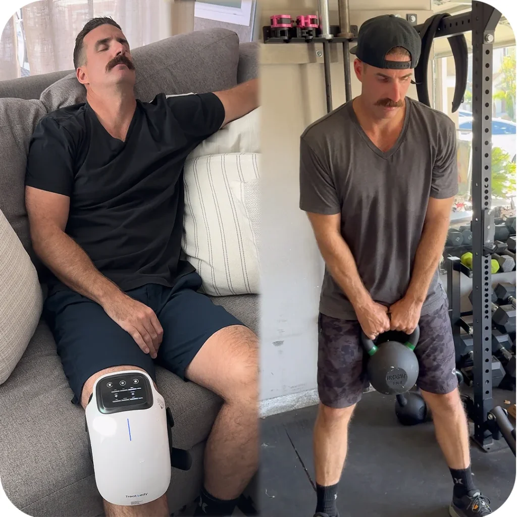 Simultaneously, our innovative red light therapy helps to reduce inflammation within the knee and support recovery and pain relief even further.