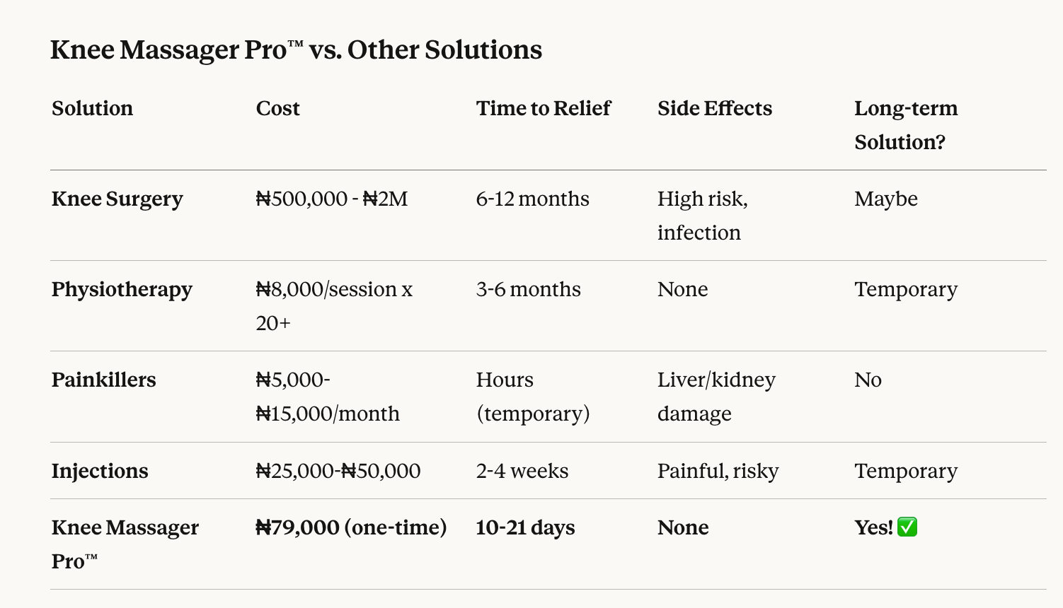 I Cancelled My ₦600,000 Surgery! I was scheduled for knee surgery at LUTH. Used this for 3 weeks, and my doctor said I don’t need surgery anymore. Best decision ever!